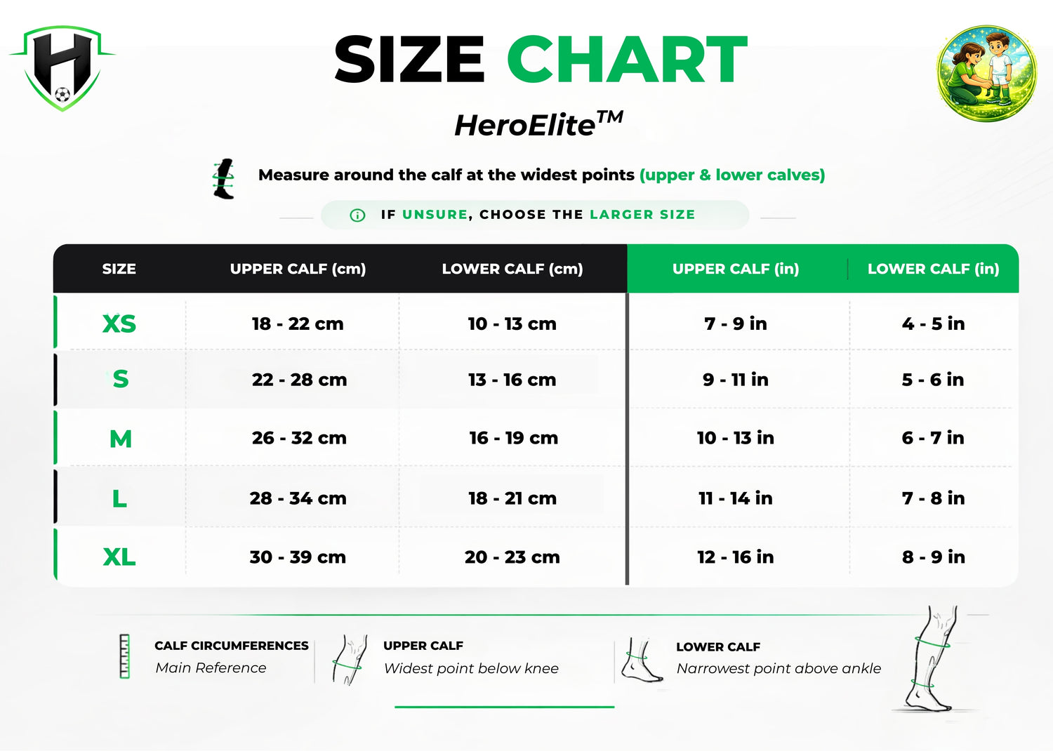 Kies vervolgens voor het bestellen eenvoudig je maat met behulp van onze maattabel op de HeroElite™-productpagina.