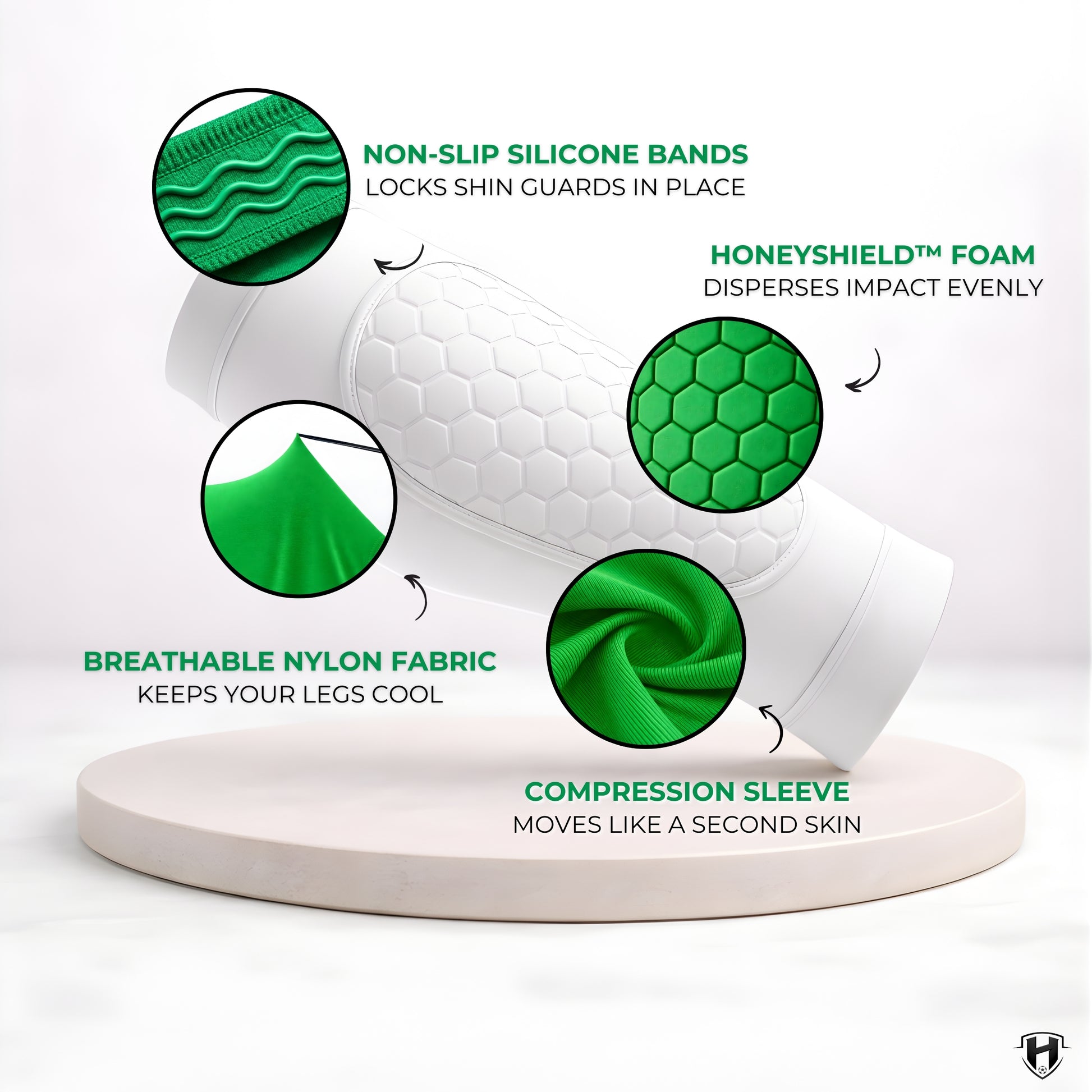 HeroElite™-scheenbeschermers zijn ontworpen om onder je voetbalsokken te dragen, net als traditionele scheenbeschermers.