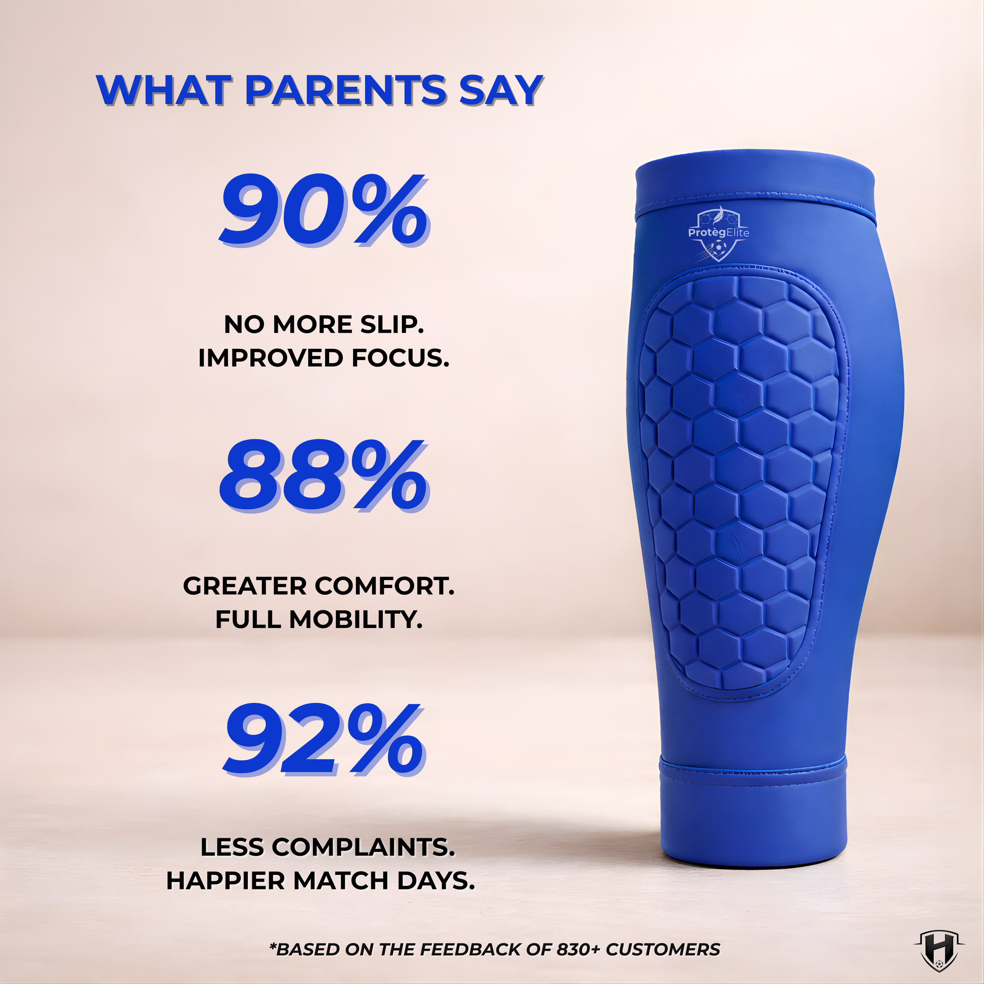 “Deze scheenbeschermers hebben een einde gemaakt aan de irritatieklachten van mijn zoon. Geen jeuk meer, ze blijven goed zitten en hij hoeft ze niet meer steeds bij te stellen. Nu kan hij zich volledig op de wedstrijd concentreren.”